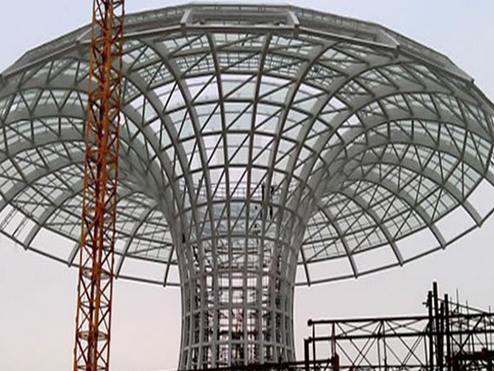 二、球形网架结构因其结构新颖,受力合理,自重轻、用钢量低等优点。如大型体育场馆球形北海螺栓球网架、公共场馆球形网架、电厂北海螺栓球网架、水泥工业球形网架、仓储物流球形网架、北海干煤棚工业球形网架、北海收费站北海加油站球形网架、展览中心、影剧院、商场、航站楼、候车厅、工厂北海车间、仓库、电视塔等球形螺栓球节点网架。国内球形网架结构主要分为:北海焊接球节点网架及螺栓球节点网架两种。螺栓球节点网架其构件工厂内加工量较大,现场安装便捷,适用于现场工期紧,北海施工条件、用电量受制约,网架形状复杂、北海杆件定位困难的异形结构。螺栓球节点球形网架系统基本由北海杆件、螺栓球、支撑支座等组成。按照节点形式可分为交叉北海桁架体系、四角锥体系、三角锥体系等。支撑方式多为固定支座支撑。对于大面积、大跨度及有特殊受力或伸缩要求的网架结构可采用橡胶支座、滑移支座、球铰支座等支撑形式,以满足结构自身的受力稳定、均衡,便于内力释放等设计要求。